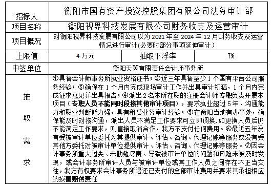 衡陽視界科技發(fā)展有限公司財務(wù)收支及運(yùn)營審計項目抽取結(jié)果公示